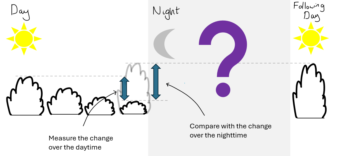 An illustration of how clouds nighttime behaviours can be inferred without having to directly observe it